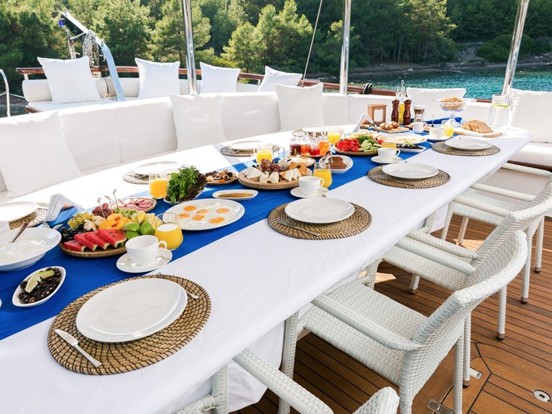 U verblijft zeven nachten op een traditioneel Turks zeiljacht voorzien van alle luxe en comfort in het gezelschap van onze uitstekend opgeleide bemanning. De kapitein, de kok en min. twee kelners verwennen u gedurende het volledige verblijf. De maaltijden aan boord zijn om duimen en vingers af te likken. Dit alles op basis van volpension van half april tot half november.